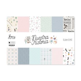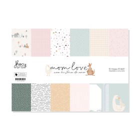 Contiene 10 hojas de diseño con estampados básicos, 1 hoja de tarjetas + 1 hoja de frases y recortables.